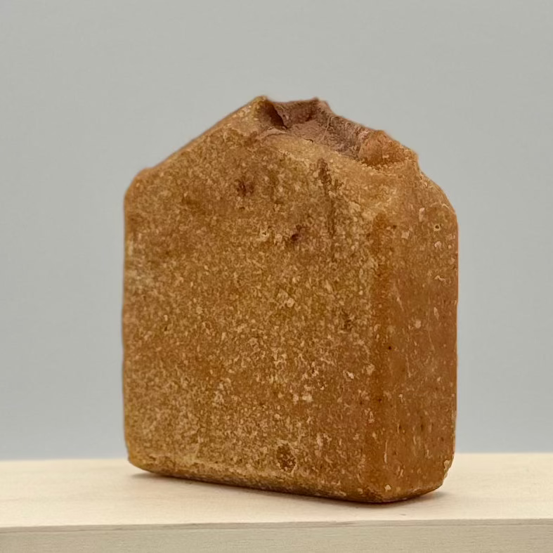 Saponified Ingredients: Coconut oil, olive oil, shea butter, castor oil, pumpkin seed oil, avocado oil, hemp oil, pumpkin puree, cantaloupe puree, sodium lactate, camel milk powder, silk peptides, hydrolyzed oats, niacinamide, turmeric powder, vitamin E oil, aloe vera powder, cocoa powder (for dusting).